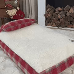 Vintage Plaid Plush Detachable Orthopedic Dog Bed with Pillow - Puppy Snug
